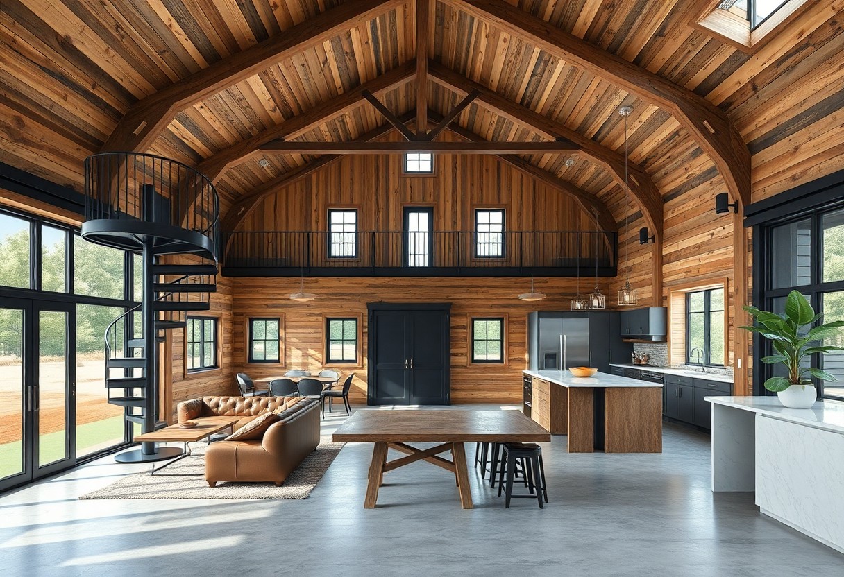 Prioritize materials that age well: reclaimed pine or white oak for flooring, A36 hot-rolled steel for visible beams, and polished or sealed concrete for high-traffic zones. Select finishes that resist wear-water-based polyurethane for wood, epoxy or penetrating sealer for concrete-and stainless or galvanized fasteners to prevent corrosion in barn-style humidity. Plan for maintenance: sealed concrete typically needs recoating every 3-5 years.